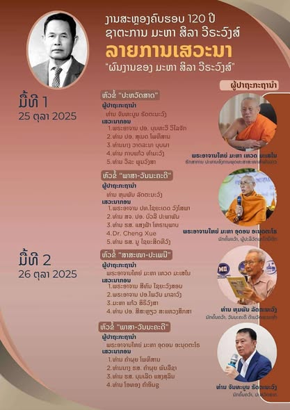 ในสมัยเจ้าเพ็ชราชตั้งรัฐบาลลาวอิสระ ท่านได้รับการแต่งตั้งให้เป็นที่ปรึกษากระทรวงศึกษาธิการ และมีส่วนสำคัญในการออกแบบธงชาติของ สปป.ลาว ที่ยังใช้งานมาจนถึงทุกวันนี้ ในวันที่ 25 – 26 ตุลาคม 2568 นี้ สมาคมนักประพันธ์ลาว และสมาคมส่งเสริมการอนุรักษ์ศิลปะวรรณคดี กำหนดจัดงานเฉลิมฉลองครบรอบ 120 ปีชาตการแด่ท่านมหาสิลา วีระวงส์ ณ สวนไผ่พันกอ บ้านไร่ เมืองไชทานี นครหลวงเวียงจันทน์