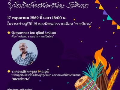 ‘ลึกซึ้งรากเหง้า เข้าใจปัจจุบัน รู้ทันอนาคต’ นิตยสาร “ทางอีศาน” ทางอีศาน“ ฉบับที่ ๑๖๘ ปีที่ ๑๔ เดือนเมษายน ๒๕๖๙ ภาพประดับปก : บุญนำ สาสุด เรื่องเด่นประจำฉบับจดหมายเหตุ“๒๐๐ ปีศึกเจ้าอะนุวง” : จดหมายรับสั่ง กรมพระราชวังบวรมหาศักดิพลเสพ ถวายรายงานทัพกราบบังคมทูลแด่พระบาทสมเด็จพระนั่งเกล้าเจ้าอยู่หัว | กำพล จำปาพันธ์“มองสภาพอีสานผ่านงานสาธารณสุข” | มุมมองนายแพทย์ณัฐวุฒิ มาสาซ้าย ผู้อำนวยการโรงพยาบาลโกสุมพิสัย “นกสันติภาพ” ขยับปีกบินในสหรัฐ | ชลธิรา สัตยาวัฒนาพระภิกษุชาวลาว ผู้ประสบอุบัติเหตุระหว่างก...Read More